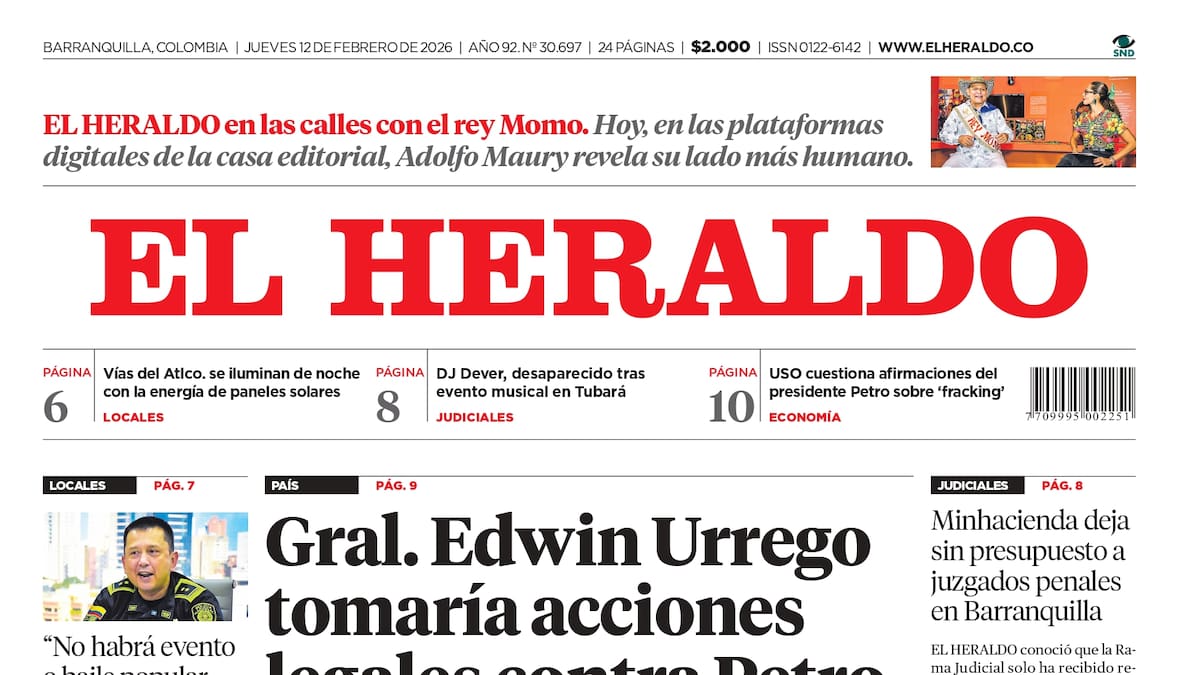 ContáctenosEdición impresa del 12 de febrero de 2026.