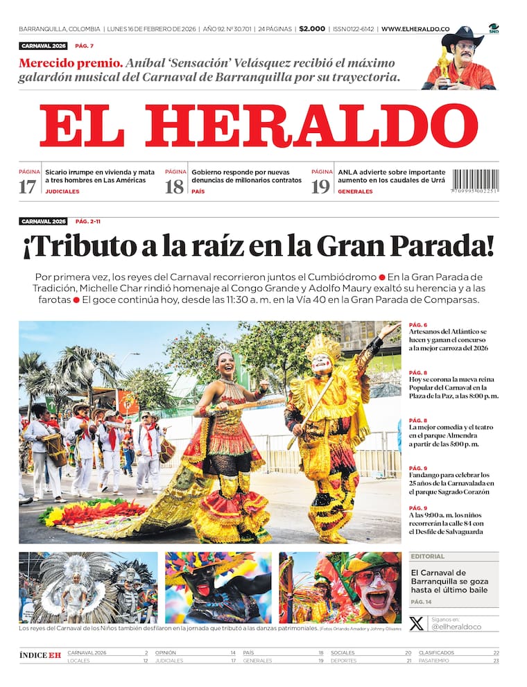 ContáctenosEdición impresa del 16 de febrero de 2026.