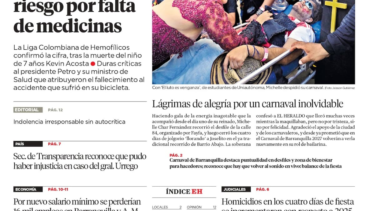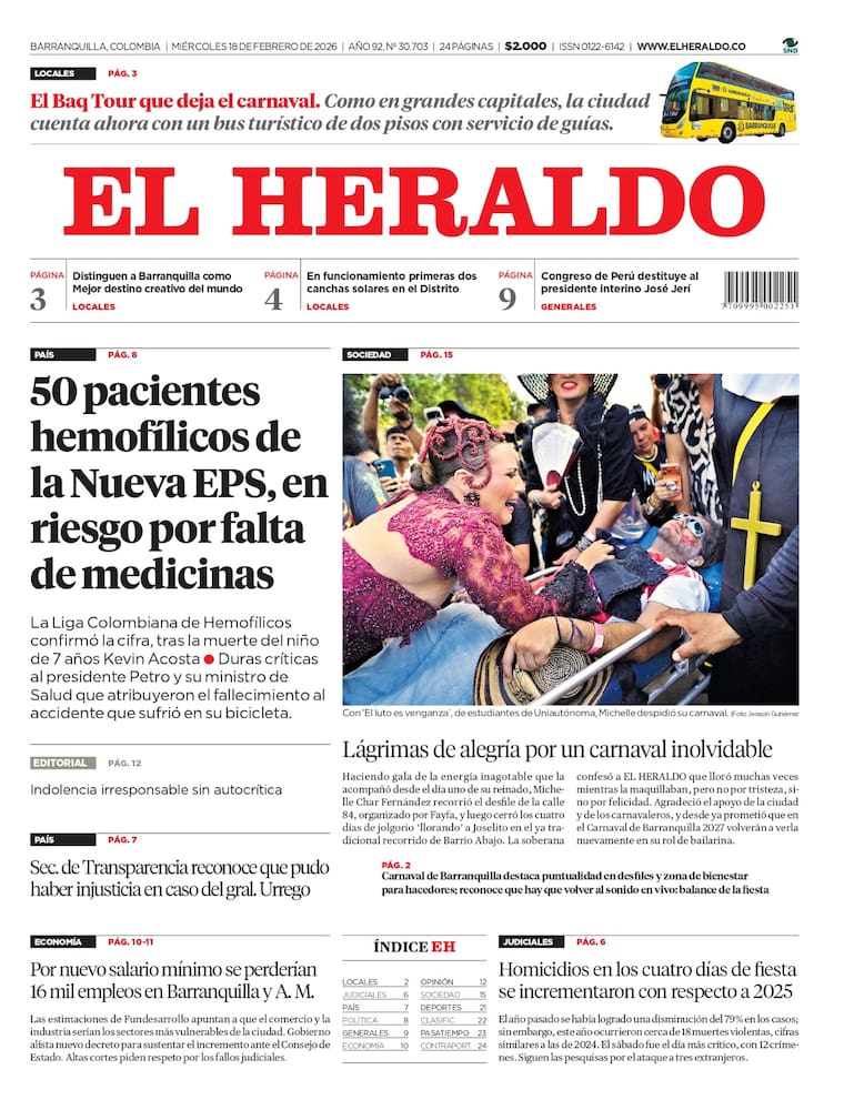 ContáctenosEdición impresa del 18 de febrero de 2026.