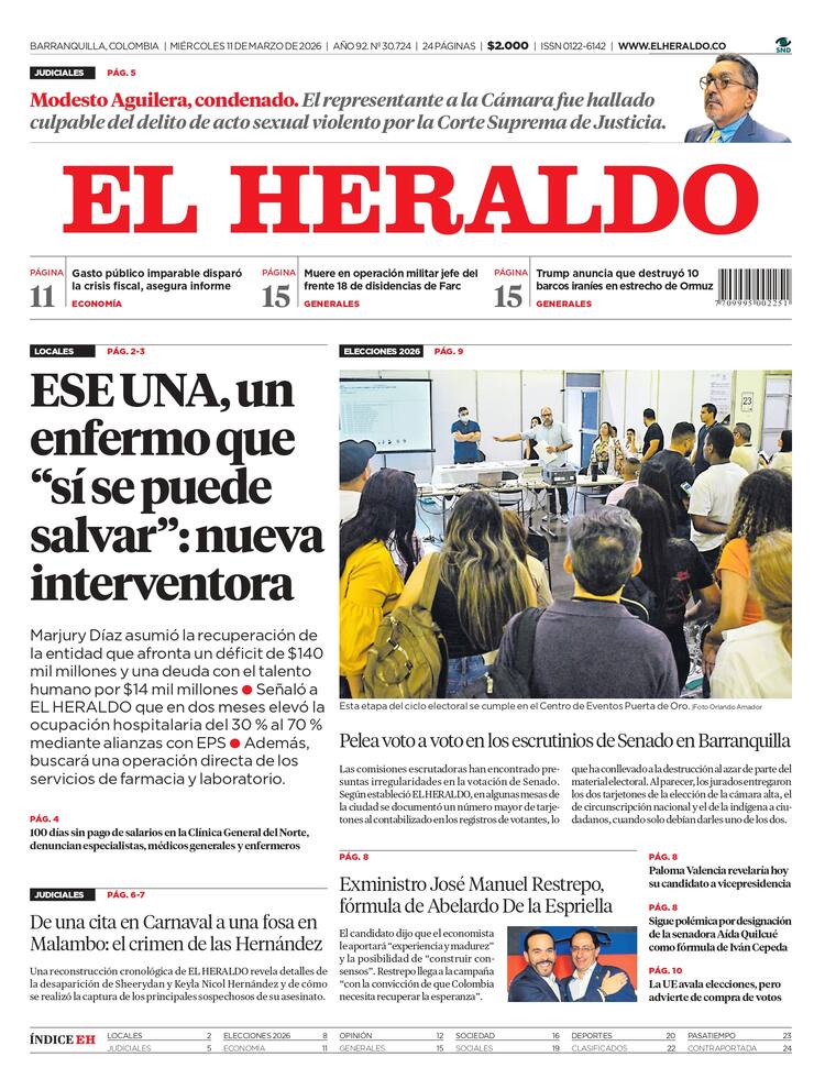 ContáctenosPortada y contraportada del 11 de marzo del 2026.