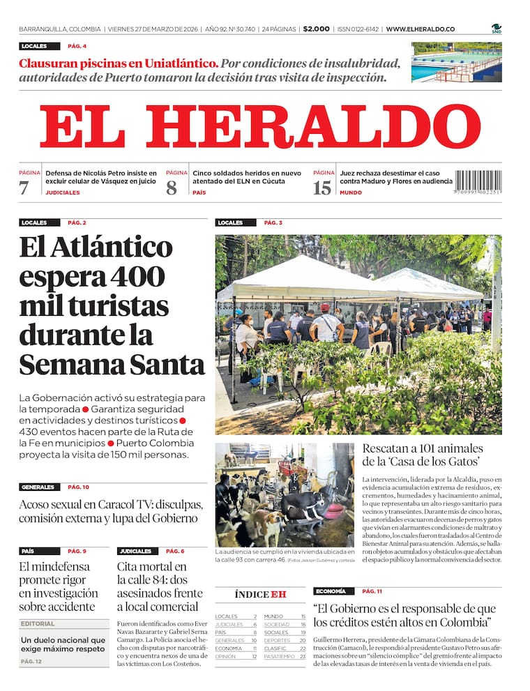 ContáctenosEdición impresa del viernes 27 de marzo de 2026.