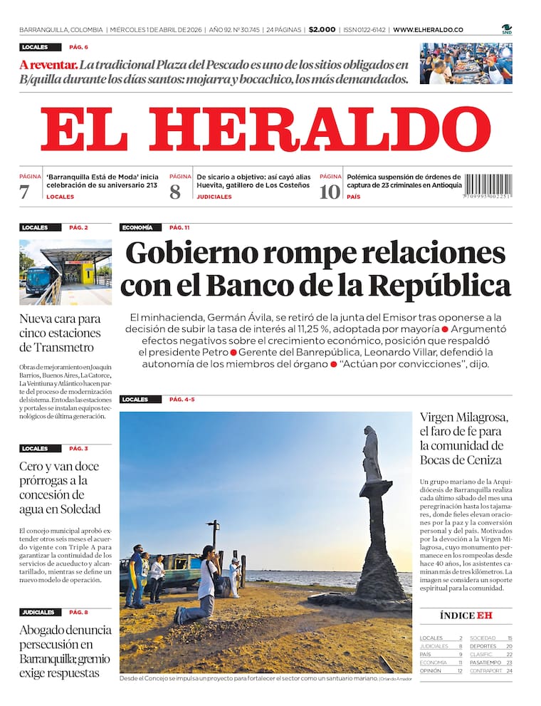 ContáctenosPortada y contraportada de EL HERALDO del miércoles 1 de abril de 2026.