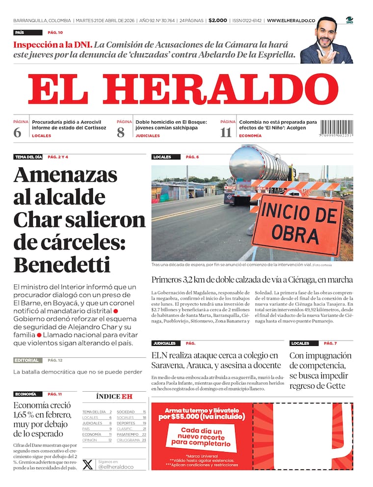 ContáctenosEdición impresa del martes 21 de abril de 2026.