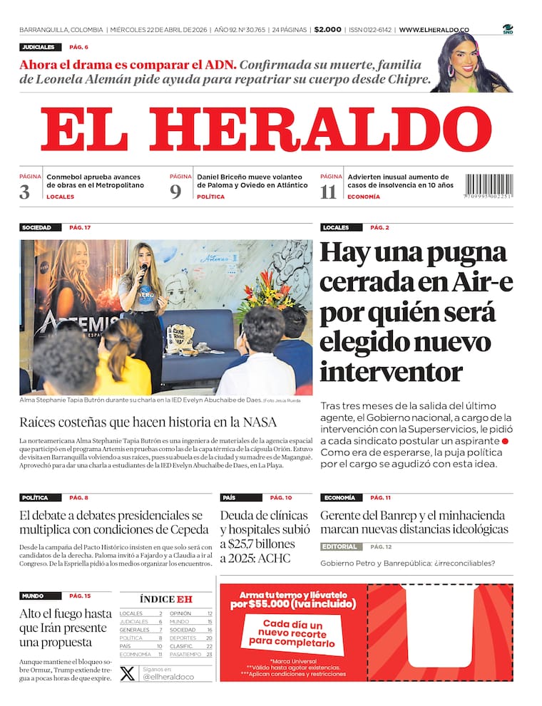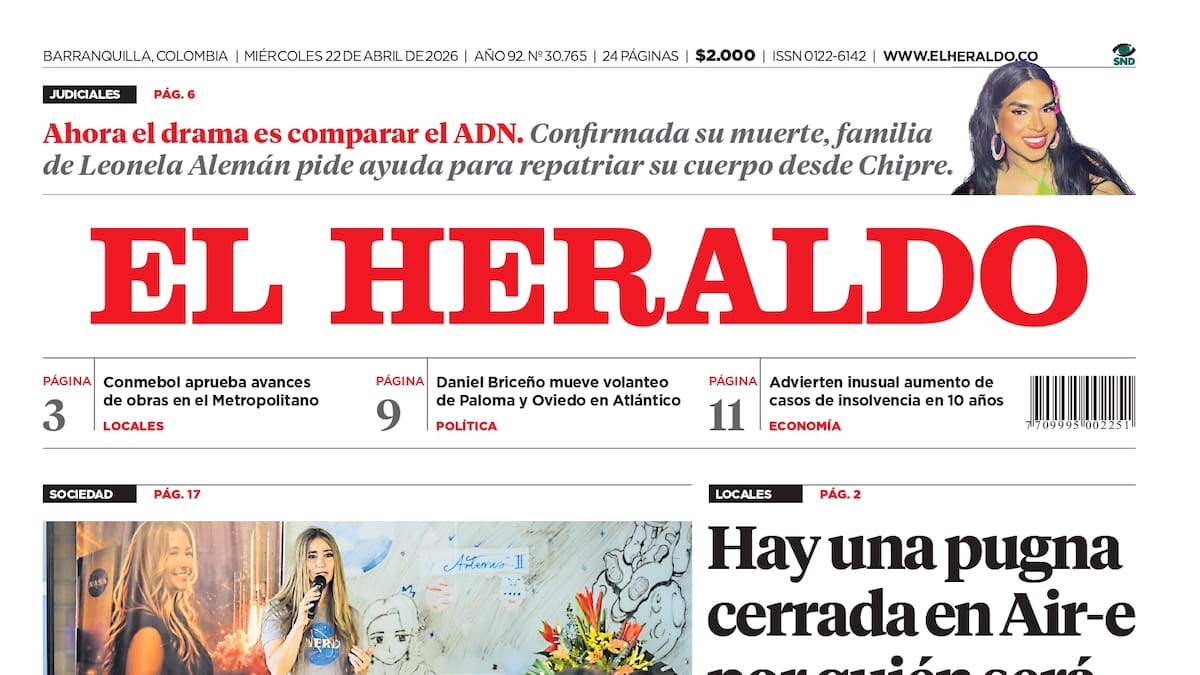ContáctenosPortada y contraportada de EL HERALDO del miércoles 22 de abril de 2026.