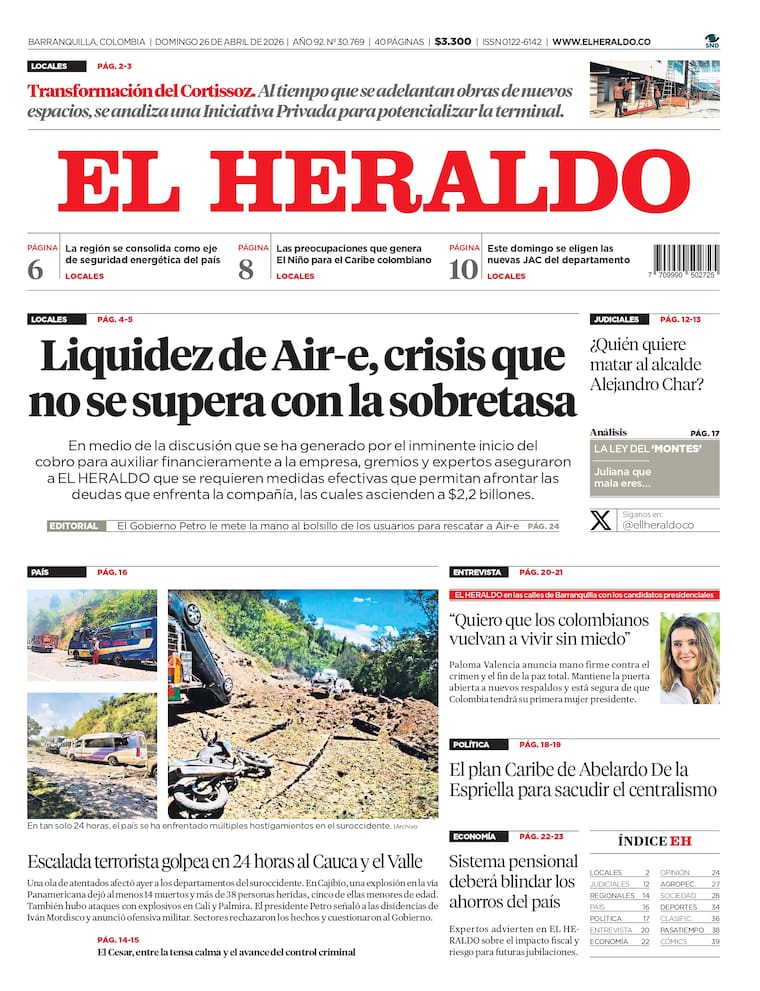 ContáctenosPortada y contraportada de EL HERALDO del domingo 26 de abril.