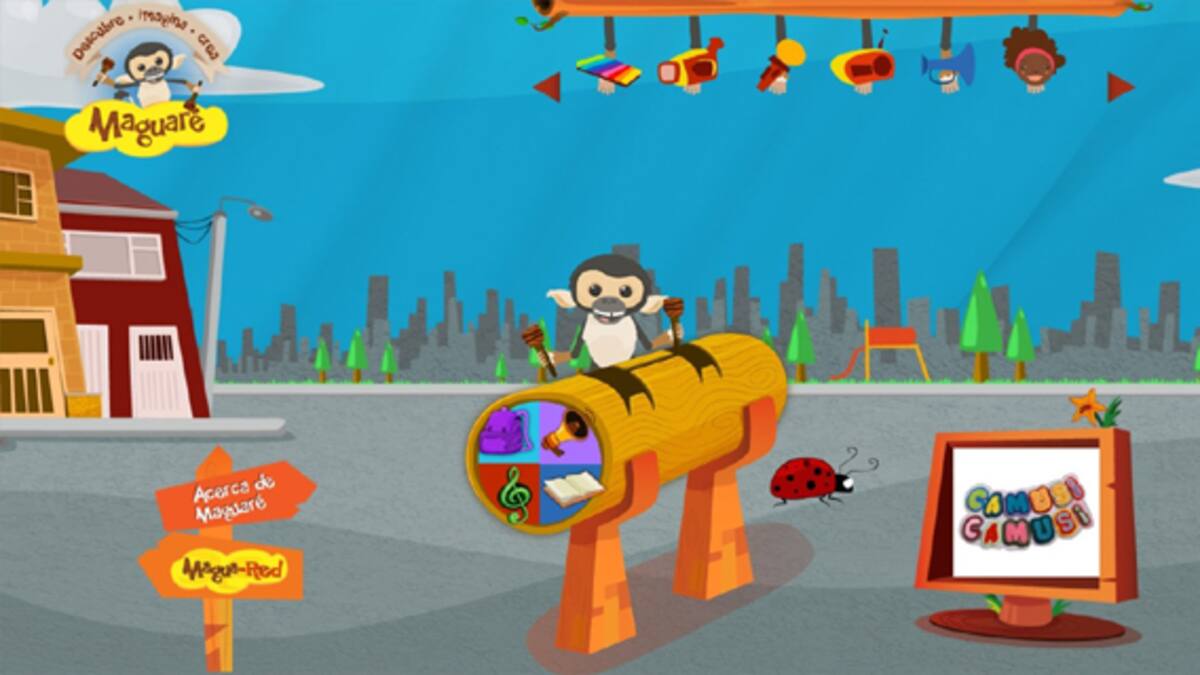 El portal Maguaré está integrado por cuatro salas a las que se puede acceder con la ayuda de Saimiri, un mono animado que guía a los usuarios durante el recorrido en lugares como la Sala de música, La casa en el árbol, El teatro de la imaginación y Las palabras al aire. En estos espacios adultos y niños pueden interactuar con juegos, hacer karaoke, escuchar y crear canciones y cuentos (con materiales del Plan Nacional de Lectura y Escritura 'Leer es mi cuento') e interactuar con otros contenidos multimedia que permiten la libre expresión y aprendizaje a partir del arte, el juego y la tradición oral (rondas, trabalenguas y danzas propias de la cultura colombiana).