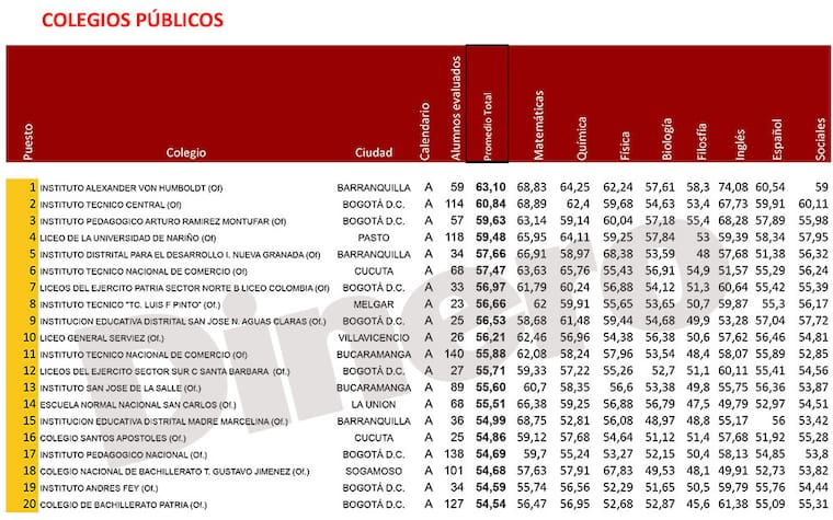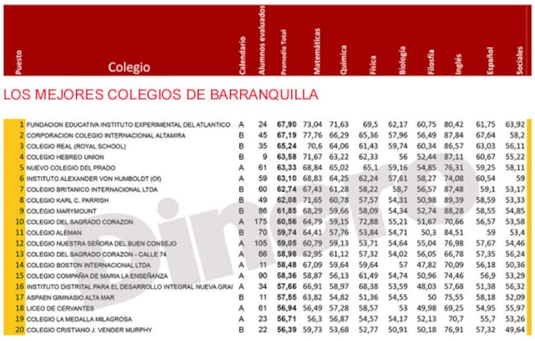 El Instituto Alexánder Von Humboldt de Barranquilla es el mejor colegio público de Colombia, según la reciente publicación de la revista Dinero, que como todos los años elabora la lista del ránking de las mejores instituciones educativas basada en los resultados de las pruebas de Estado Saber 11.