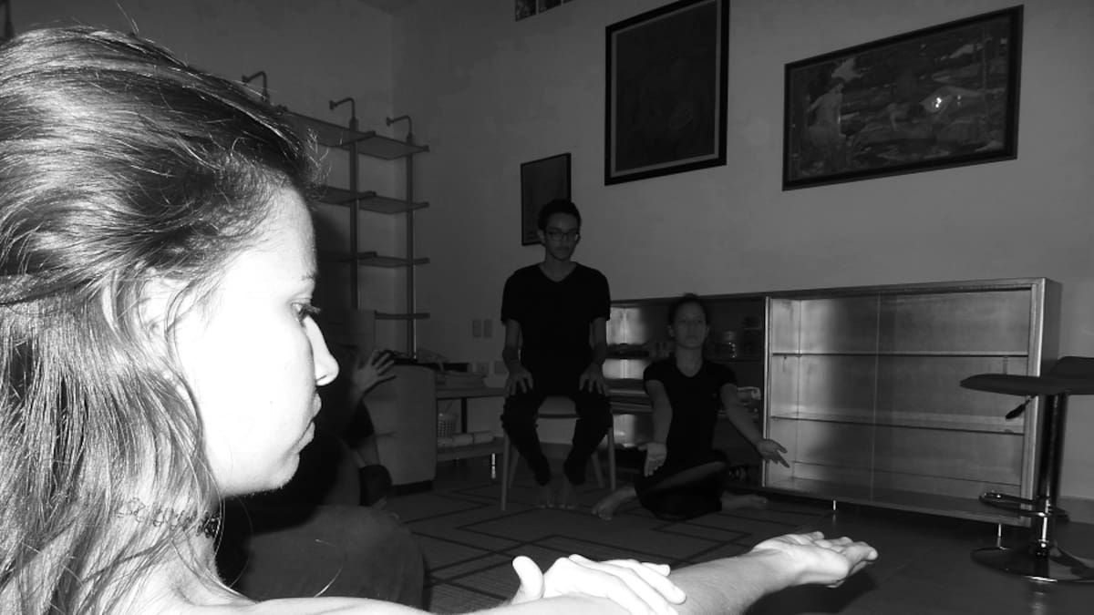Cruzas y cruzas, atraviesas, olvidas el número de puertas, de pruebas, simplemente te rindes. Cruzas constantemente, así no te muevas, así estés quieto. Cambia el espacio. Ahora cierran la puerta, retoman la palabra hablada. Escuchas gritos de dolor, así la lectora nunca grite. Escuchas risas y sonidos de agua cayendo que te acarician. La palabra te invade.