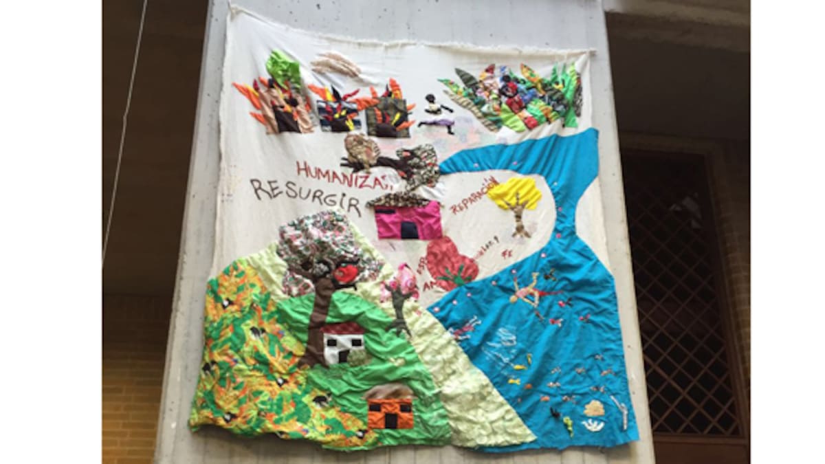 Las telas, como piezas de arte, reflejan la memoria del conflicto armado de las mujeres de Mampuján.