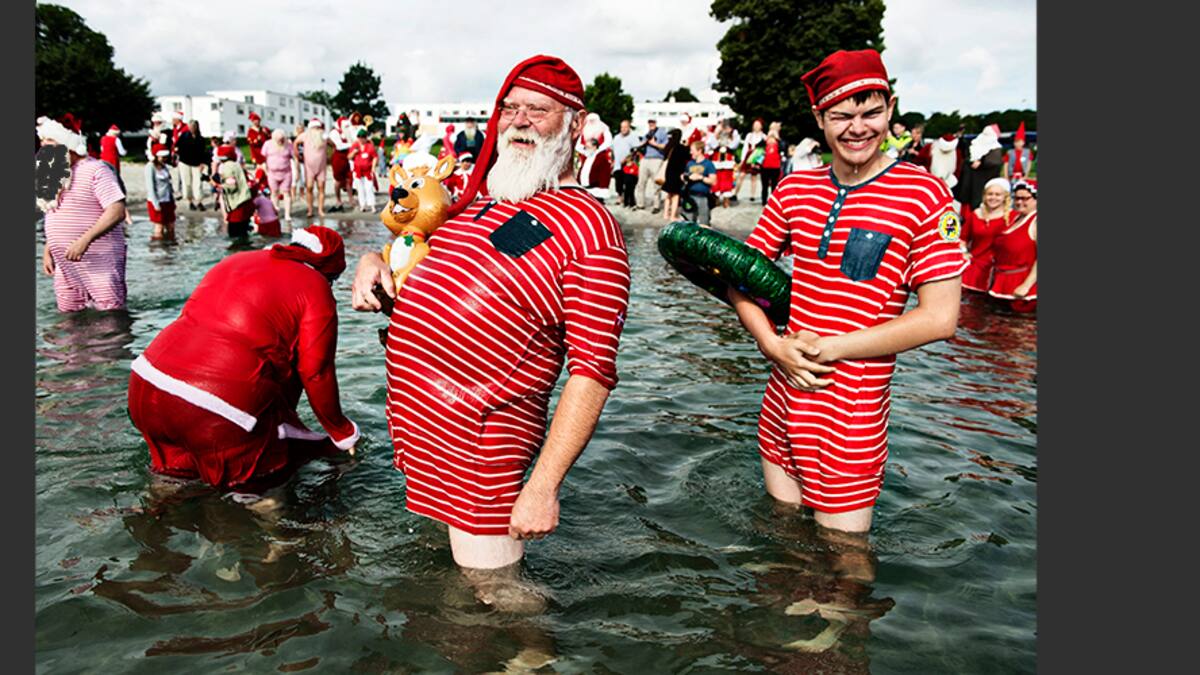 Entre las actividades del congreso anual está el tradicional baño de pies durante el segundo día en la playa Bellevue, Copenhaguen. Además, los Papás Noel salieron a tocan en un bote crucero en el puerto de Copenhague.