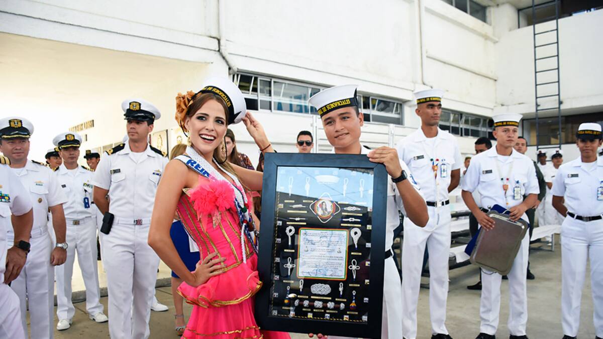 La Reina del Carnaval 2017 ‘Fefi’ Mendoza fue homenajeada y proclamada como la Soberana de los Marinos, en la Escuela Naval de Suboficiales ARC Barranquilla, luego de la formación militar que tradicionalmente se realiza los viernes para izar el pabellón nacional.