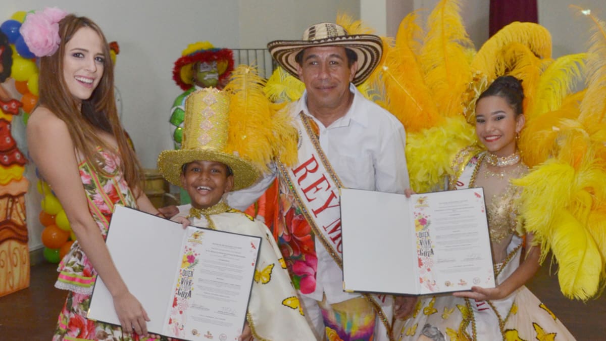 Con homenaje a Gabriel García Márquez, mariposas y plumas amarillas en sus atuendos, subieron los reyes infantiles a la tarima, donde se les entregó el decreto.