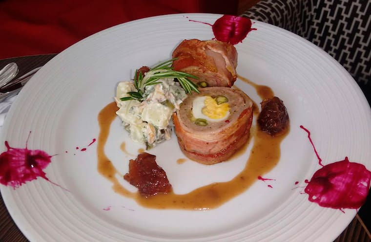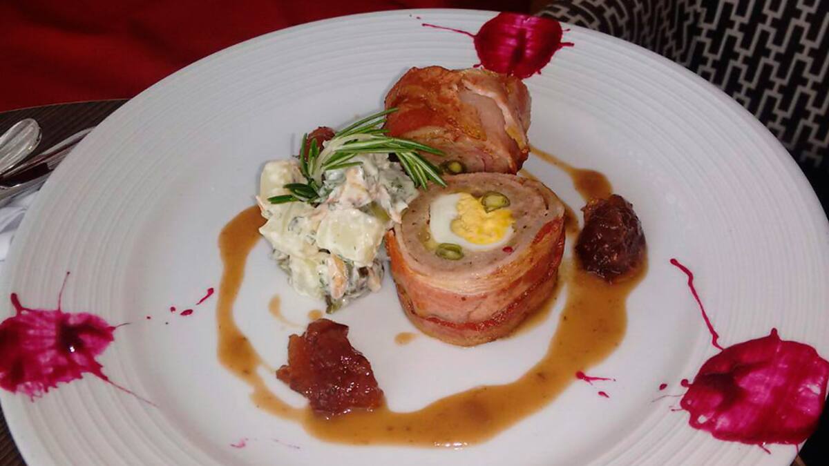 Plato fuerte: Tronco de carnes y tocineta navideña