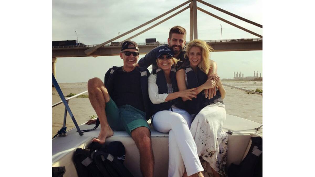 Contentos. Así se logra ver a la familia Piqué Mebarak durante su estadía en Barranquilla. Este martes, desde su cuenta de Instagram, el defensor central del Fútbol Club Barcelona, Gerard Piqué, compartió una imagen en la que se encuentra acompañado de Shakira y sus padres durante una visita al río Magdalena y al Club de Pesca.
