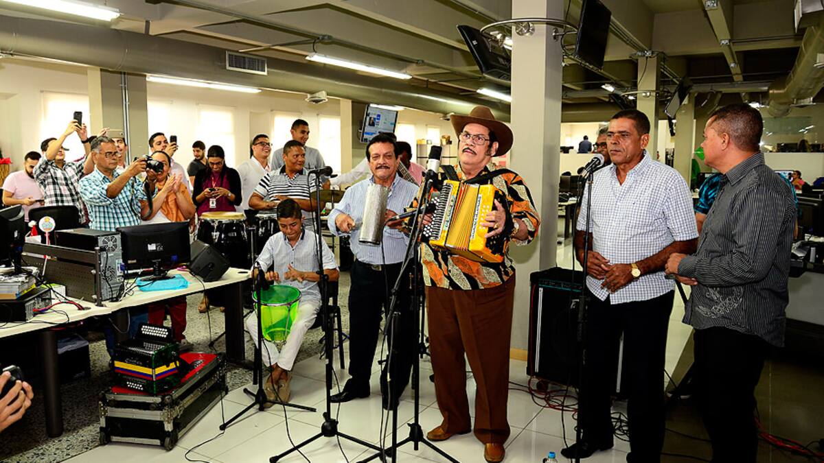 En compañía de ‘Los locos del Swing’, nombre que recibe su agrupación, deleitó a los periodistas de esta casa editorial, además de su música, con anécdotas e historias de cómo surgieron las letras de las canciones y recordando el momento en que grabó su primera canción a la edad de 15 años, la cual fue ‘La casa en el aire’ del maestro Rafael Escalona.