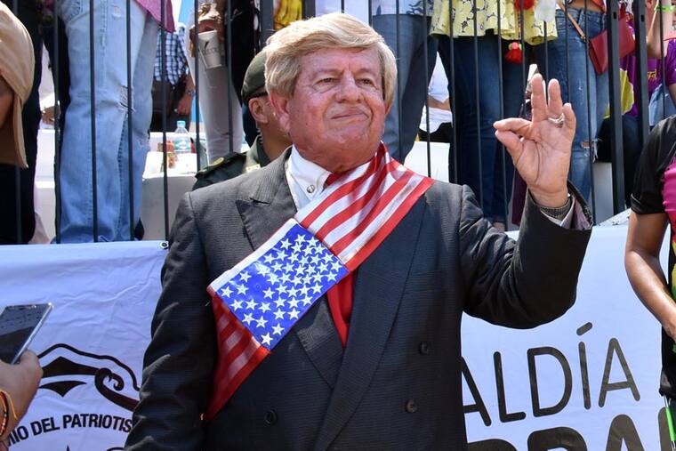 Donald en la Batalla de Flores, o Víctor Enrique Arroyuelo, de 68 años y taxista de profesión, saludó al alcalde de Barranquilla Alejandro Char, el real, y le prometió darle visa sin ningún problema.