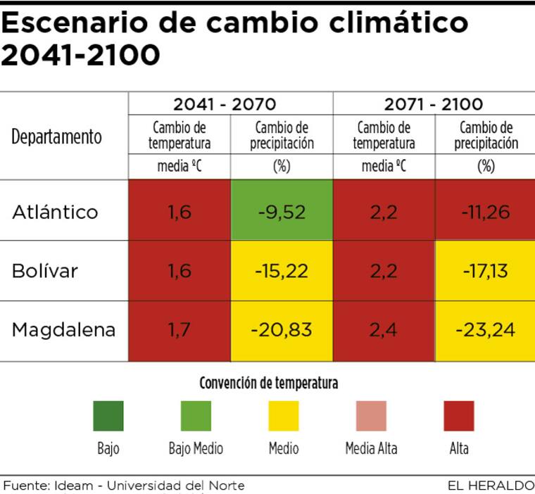 Una de las posibles causas que produce la advertencia es el dato entregado por el especialista en Derecho del Medio Ambiente Luis Guardela, uno de los exponentes invitados, quien precisó que —según el estudio Escenarios Climáticos 2011-2100, del Ideam— en el departamento del Magdalena habrá un aumento de temperatura de 1 grado centígrado al 2040 y una disminución de 18,65% en precipitaciones.