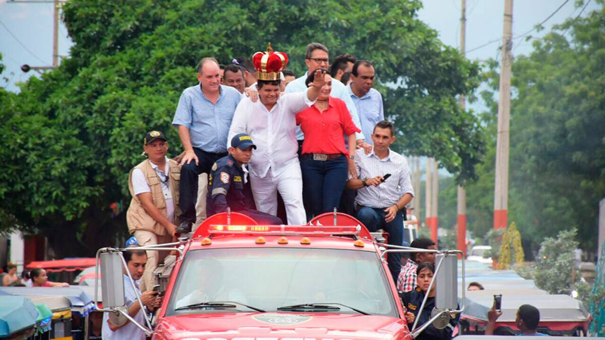 López llegó subido a bordo de una máquina del Cuerpo de Bomberos junto a su tío Pablo López, el gobernador del Cesar, Francisco Ovalle, la alcaldesa de La Paz, Andrea Ovalle, el Rey de reyes de la canción inédita, Ivo Luis Díaz y el presidente de la Fundación del Festival de la Leyenda Vallenata, Rodolfo Molina.