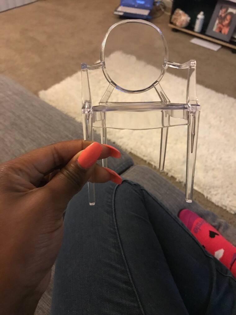 Pero su sorpresa fue mayor cuando terminó de abrir las cajas y vio el interior. La silla real medía 15 centímetros: se trataba de un adorno.