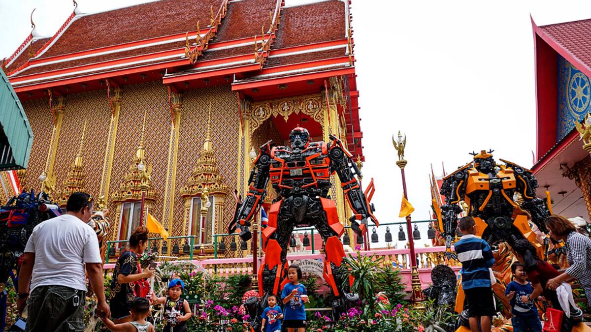 'El templo compró cinco estatuas de los Transformers y las instaló delante de él para que los niños puedan jugar y los adultos puedan sacarse fotos', explica a la AFP Pra Vichien, uno de los responsables religiosos del edificio.