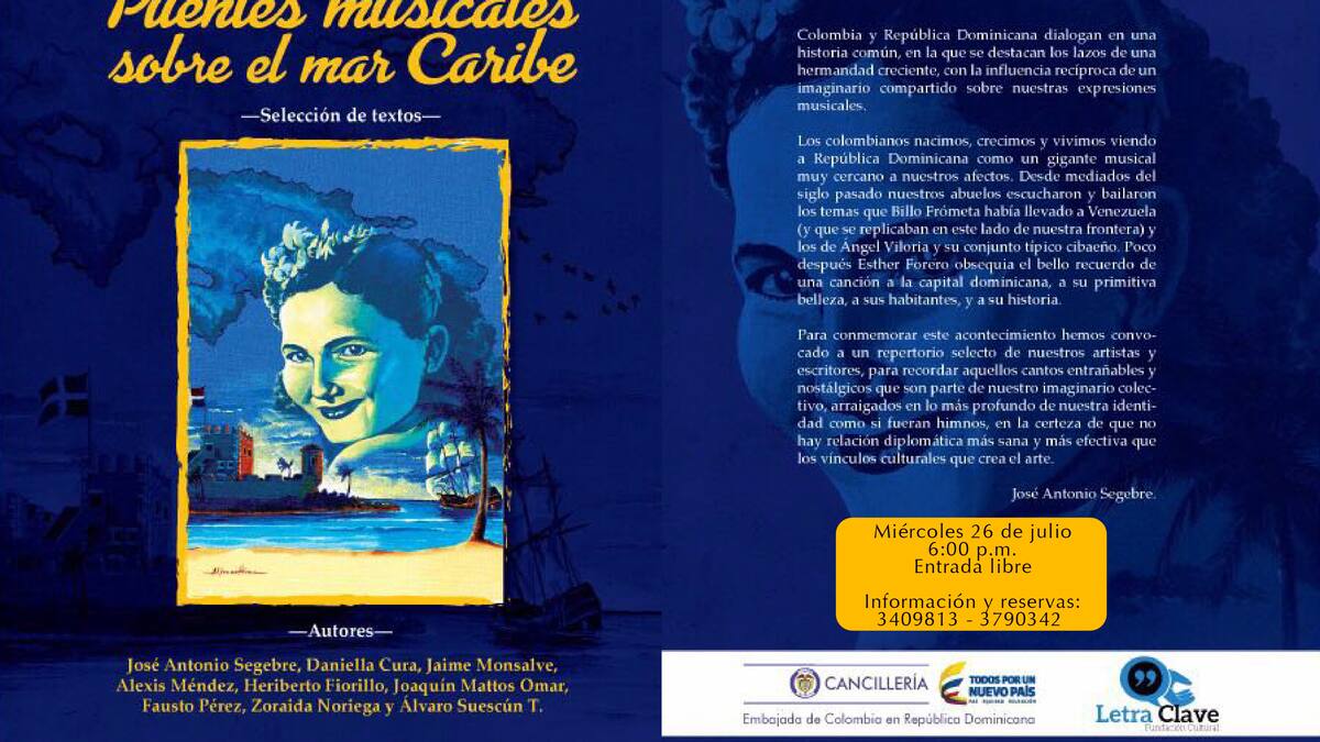 El miércoles a las 6:00 p.m., en el restaurante La Cueva, será el lanzamiento en Colombia del libro Puentes musicales sobre el mar Caribe, una investigación que recoge los lazos que existen entre Colombia y República Dominicana a través de la música y contará con la participación de José Antonio Segebre, embajador de Colombia ante República Dominicana.