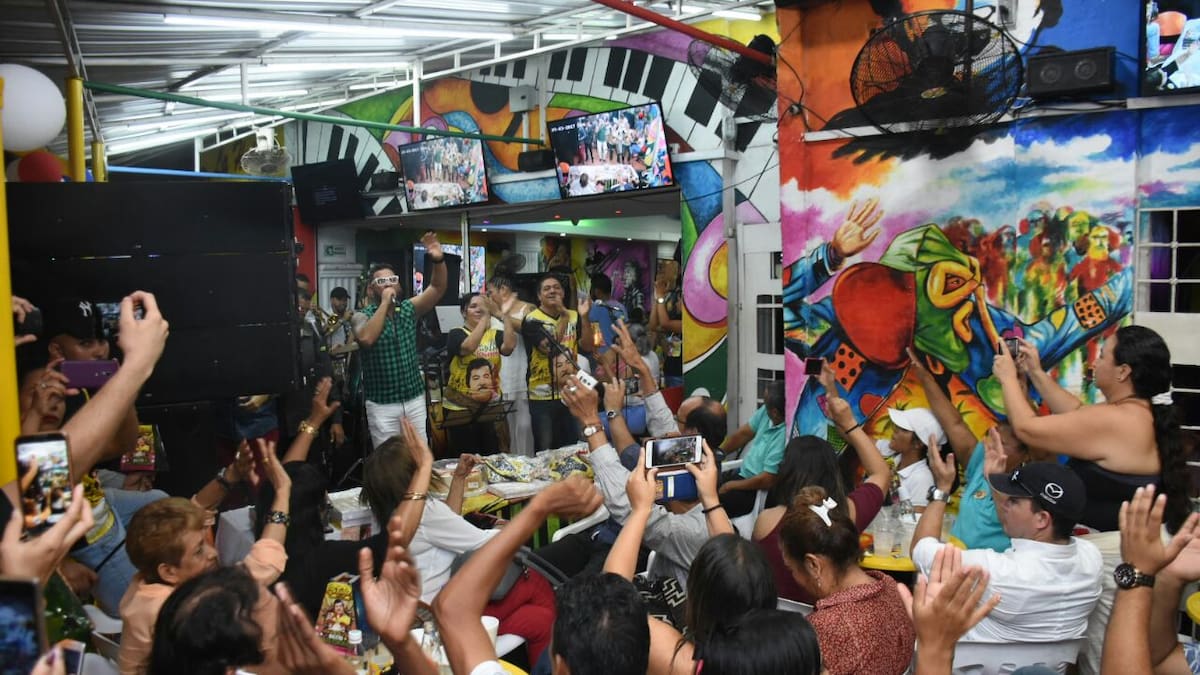 Faroles de colores, con la imagen del maestro Echeverría, se encendieron en cada mesa del lugar, declarado Patrimonio Cultural y Musical de Barranquilla, y como si fuera el 7 de diciembre se prendieron las velas con Las cuatro fiestas de fondo.