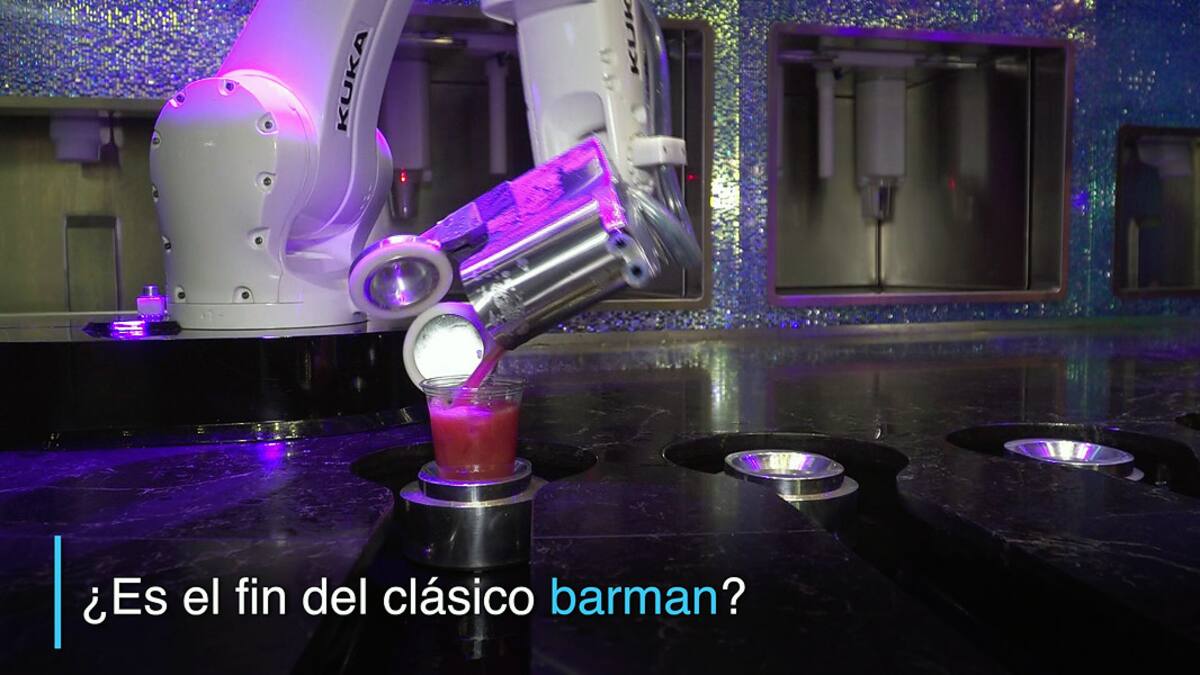 Tipsy coloca hielo, selecciona una botella, agita una mezcladora y vuelca el contenido en un vaso de plástico, todo sin derramar una gota. Es un robot "barman", la estrella de un concurrido bar de Las Vegas.