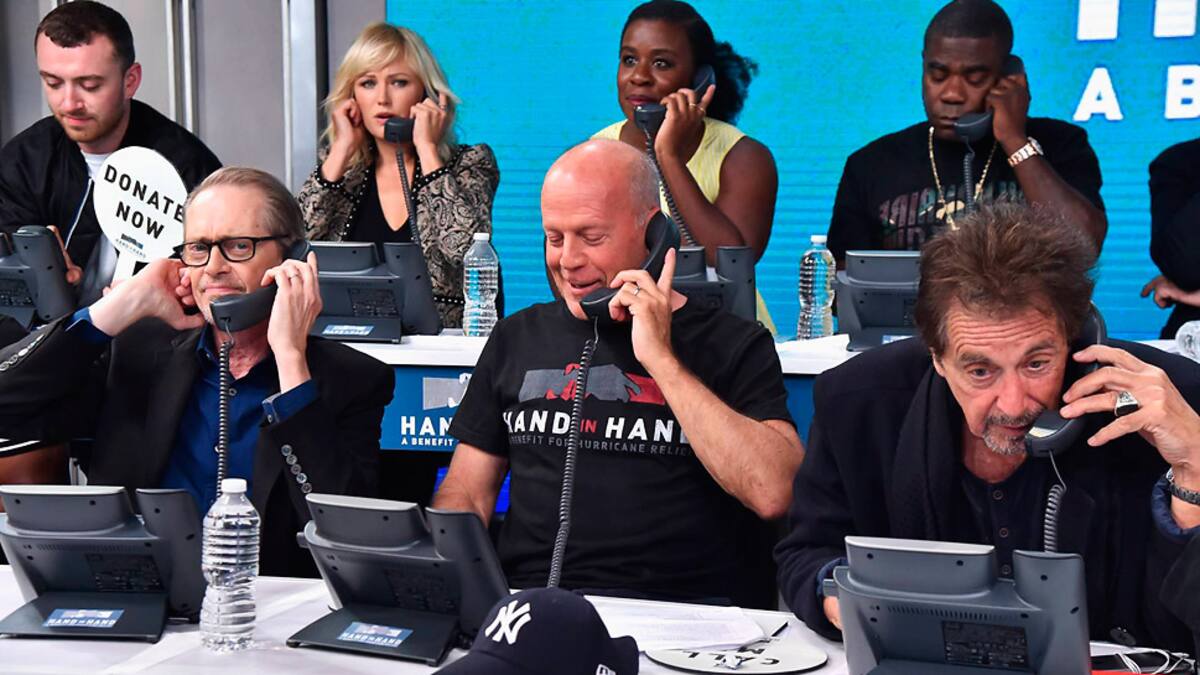 Durante una hora los teléfonos no dejaron de sonar en Los Ángeles, Nueva York, Nashville y San Antonio con un objetivo en común: ayudar a los damnificados de la destrucción que dejaron Irma y Harvey en su paso por los estados de Texas y Florida.