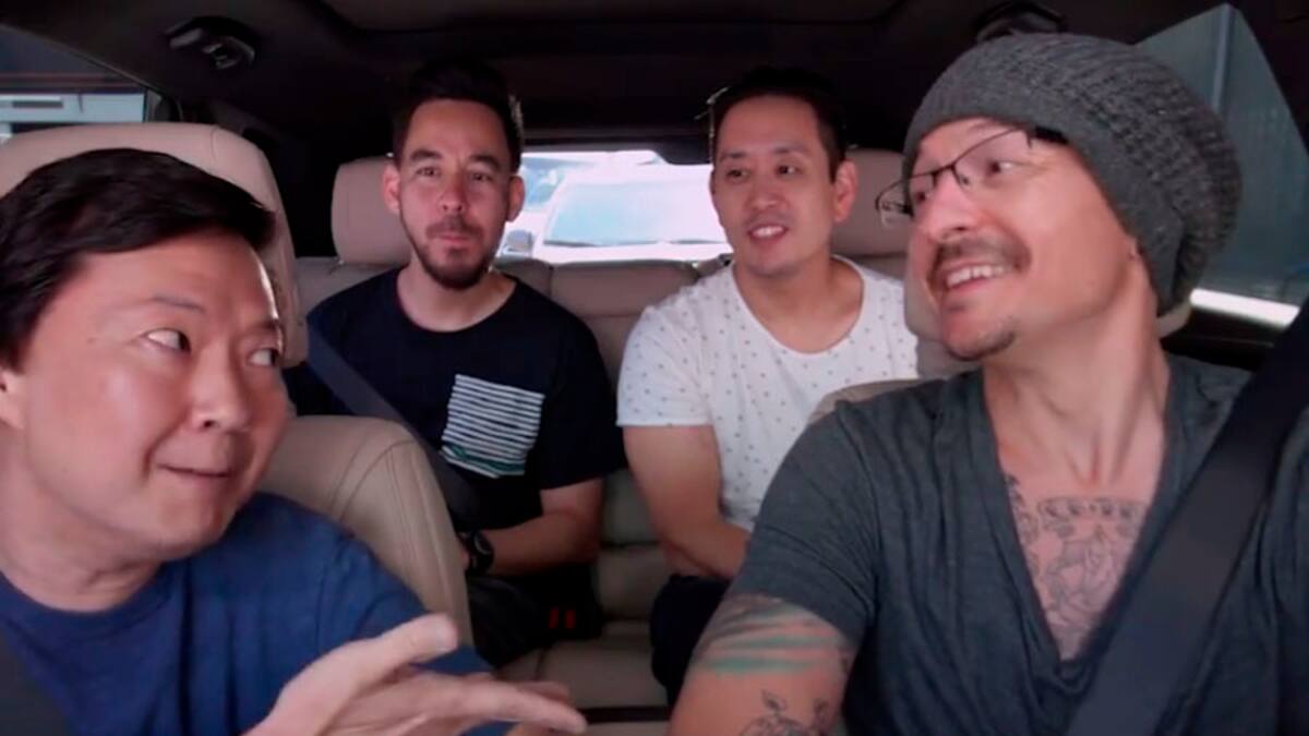 En ‘Carpool Karaoke’, espacio que popularizó el humorista James Corden, tres miembros de Linkin Park comparten vehículo con el entrevistador y actor Ken Jeong. Tienen un momento distendido con muchas risas y cantando temas propios como de otros músicos.