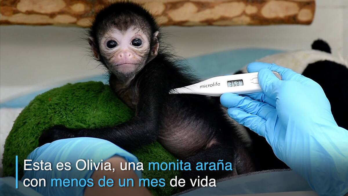 Es una monita araña de menos de un mes de vida. Está siendo atendida en el zoológico de Cali, después de una caída que la dejó inconsciente hace una semana.