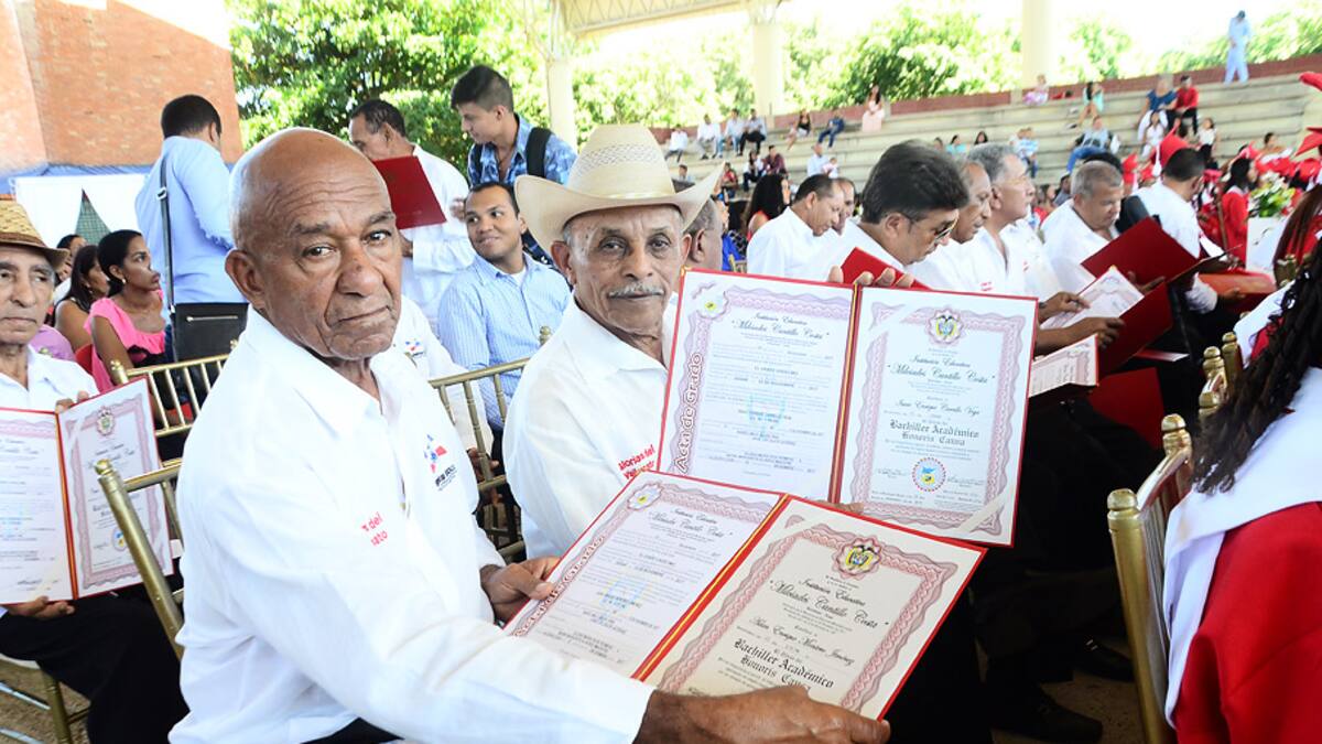 Entre los adolescentes que fueron con toga y birrete rojo, brillaban con su propia ‘pinta’ los veteranos músicos vallenatos quienes por su pasión por el folclor, y algunos por su trabajo en el campo en sus años de juventud, no alcanzaron a culminar sus estudios.