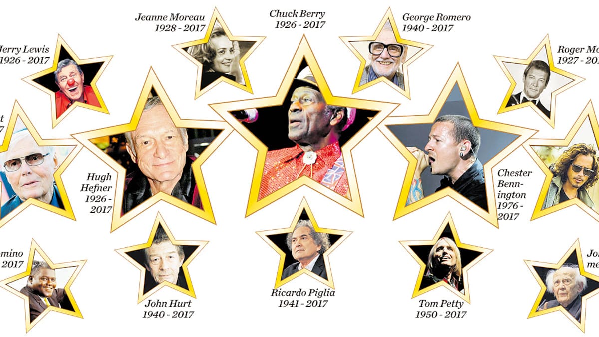 De imprescindibles pioneros como Chuck Berry a auténticos genios de la comedia como Jerry Lewis, el cine y la música vieron también cómo en 2017 fallecieron estrellas de la talla de Fats Domino, Tom Petty, Roger Moore, Jonathan Demme o Jeanne Moreau.