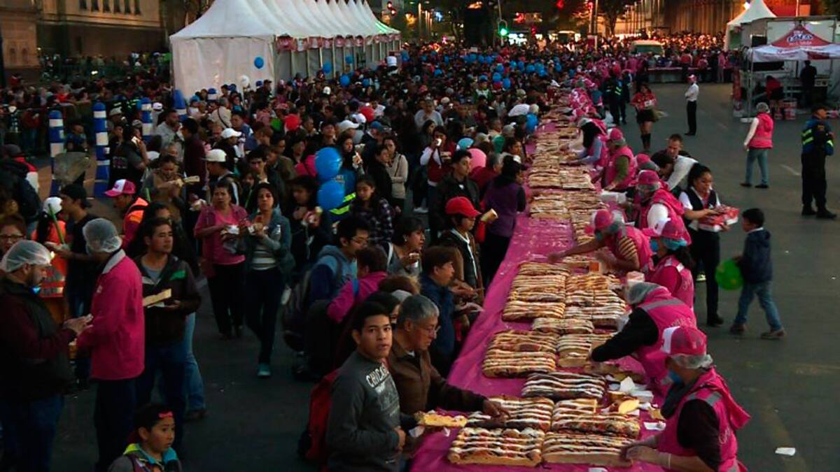 El Zócalo de Ciudad de México, la plaza principal de la capital, fue rodeado la noche del viernes con una kilométrica rosca de Reyes, un pan de naranja con frutos confitados que los mexicanos acostumbran comer la víspera de la llegada de los Reyes Magos.