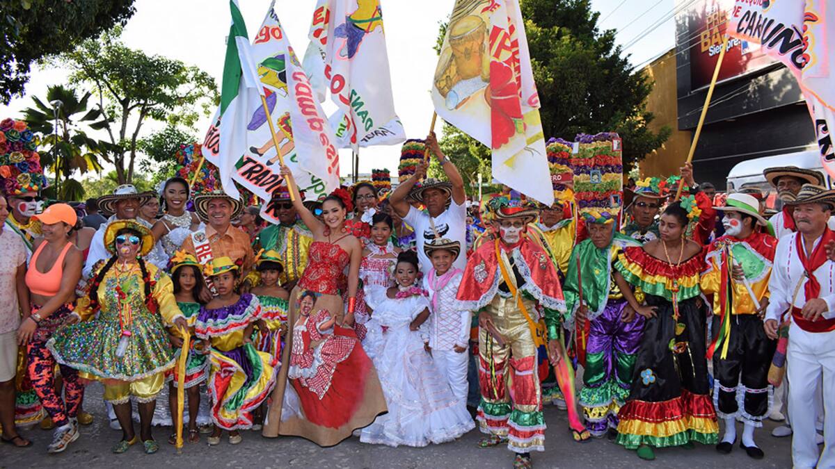 La tarde del pasado viernes un colorido desfile compuesto por decenas de danzantes se tomó la plaza central de Galapa para recibir a los reyes del Carnaval de Barranquilla 2018, Valeria Abuchaibe y Ricardo Sierra, invitados especiales de la izada de banderas de los grupos folclóricos locales.