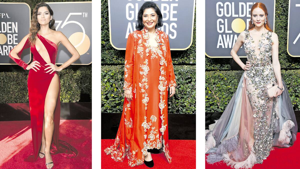 Meher Tatna: la presidenta de la Asociación de Prensa Extranjera de Hollywood y nacida en la India eligió el rojo porque en su cultura es el color equivalente al negro.