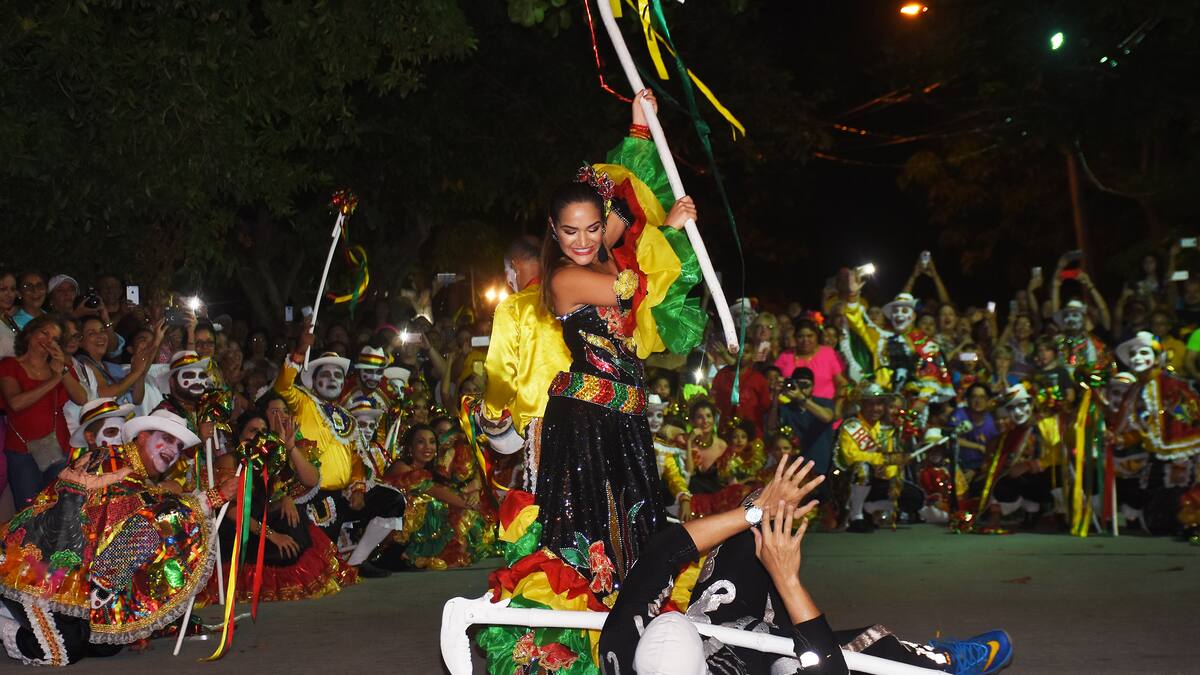 La reina del Carnaval, Valeria Abuchaibe Rosales, recorrió la ciudad de norte a sur poniendo en alto los emblemas de aquellas danzas que engrandecen año tras año esta obra maestra de la cultura declarada por la Unesco Obra Maestra del Patrimonio Oral e Inmaterial de la Humanidad en 2003.