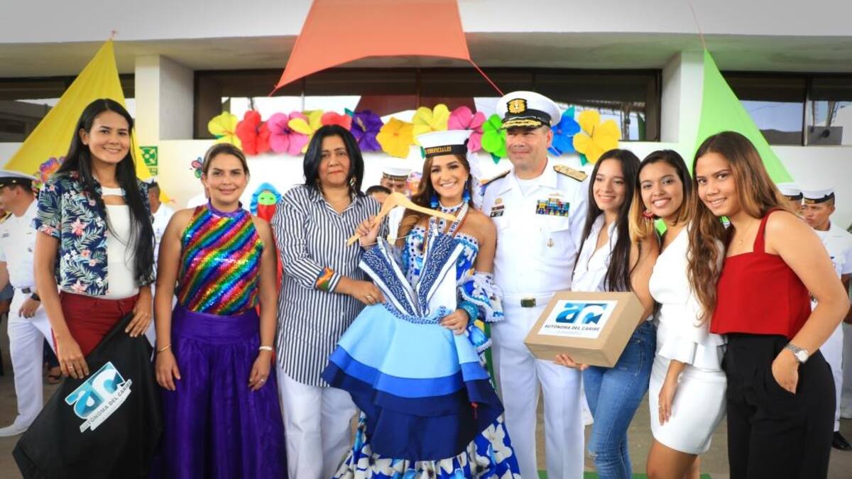 La Escuela Naval de Suboficiales fue el lugar donde el contralmirante Juan Ricardo Rozo Obregón, y la Reina del Carnaval presidieron el acto.