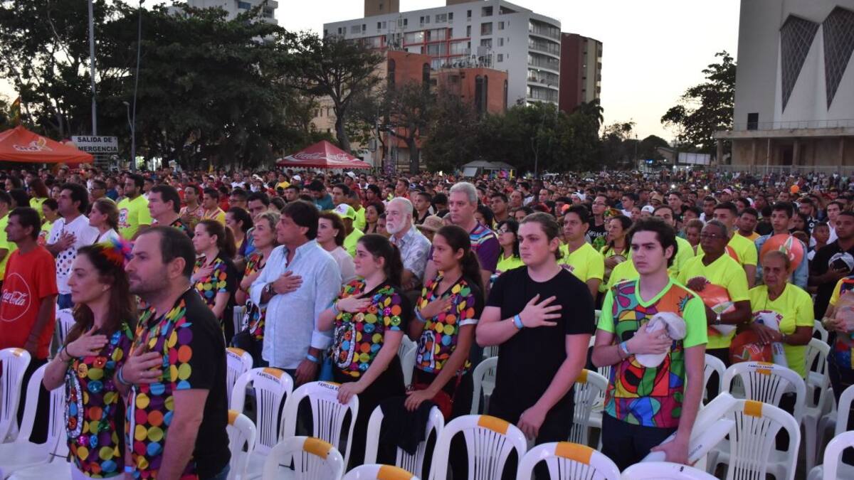 Los asistentes al evento folclórico se unieron en un solo sentimiento de rechazo por el atentado alzando sus pañuelos y los sombreros en el pecho. Bajo el lema #NoNosVamosADejar, que también ha circulado en redes sociales, se unieron en un grito y luego con aplausos como una señal de apoyo a las familias que perdieron a sus miembros o los que aún se encuentran en el hospital.