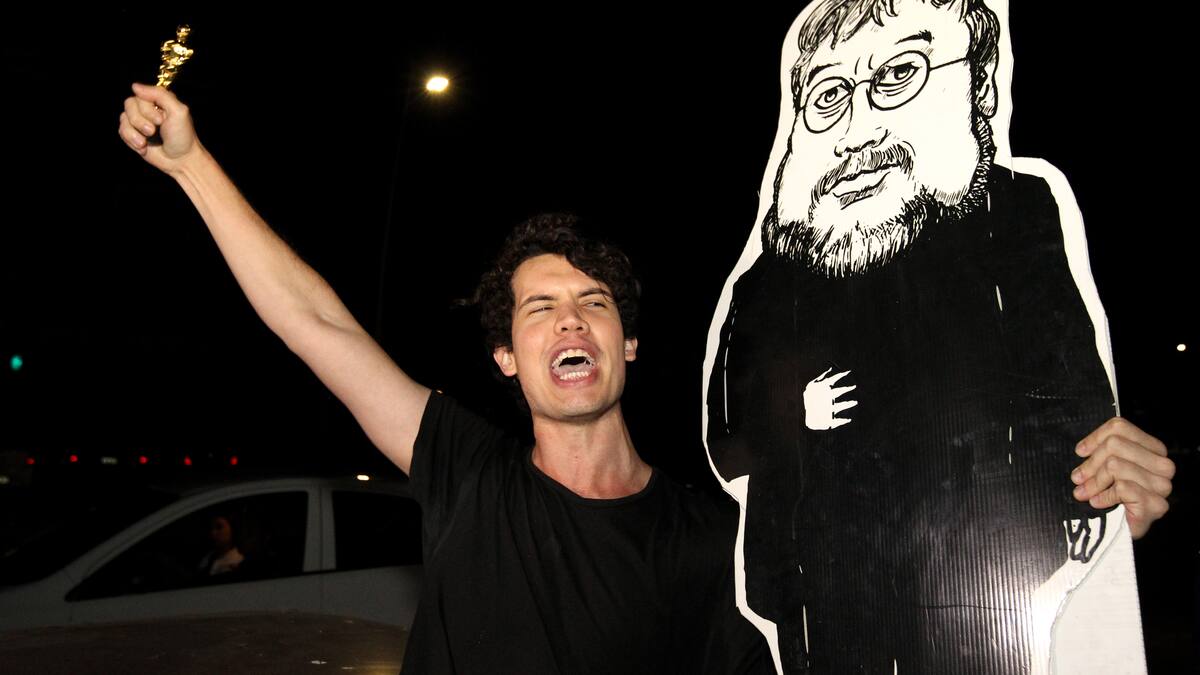 La tradicional canción mexicana 'Cielito lindo' no faltó en la celebración: '¡Ay Ay ay ay canta y no llores, porque cantando se alegran, cielito lindo, los corazones!', entonaban los seguidores del director mientras cargaban la réplica de la estatuilla y una imagen de Del Toro.