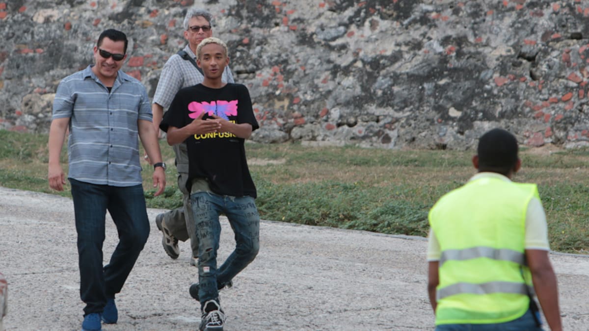 A las 3:00 de la tarde, y cuando ya se habían iniciado las grabaciones en el Castillo de San Felipe de Barajas, el mayor de los Smith arribó al lugar para encontrarse con su padre, a quien, al parecer, acompañará durante lo que resta del rodaje en Cartagena.