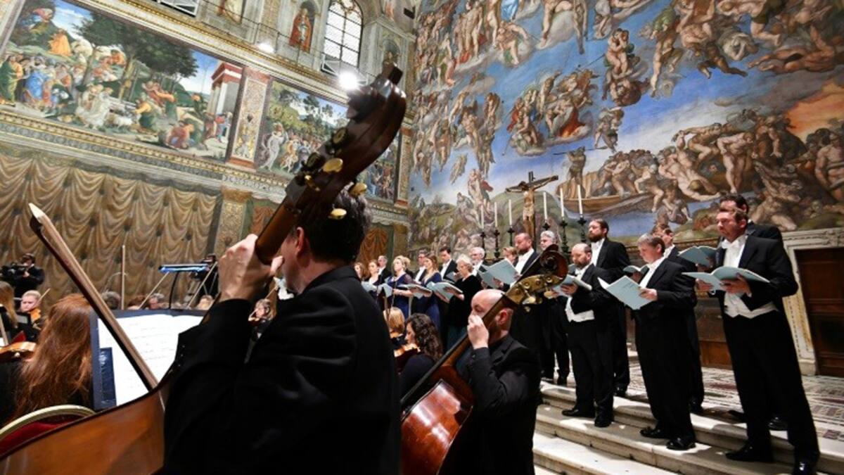 Bajo los frescos de Miguel Ángel, 'podemos pensar en su Pietà (una escultura que representa a la Virgen con el cuerpo de Cristo sobre sus rodillas) abajo en la basílica de San Pedro y escuchar esta Pietà musical'.