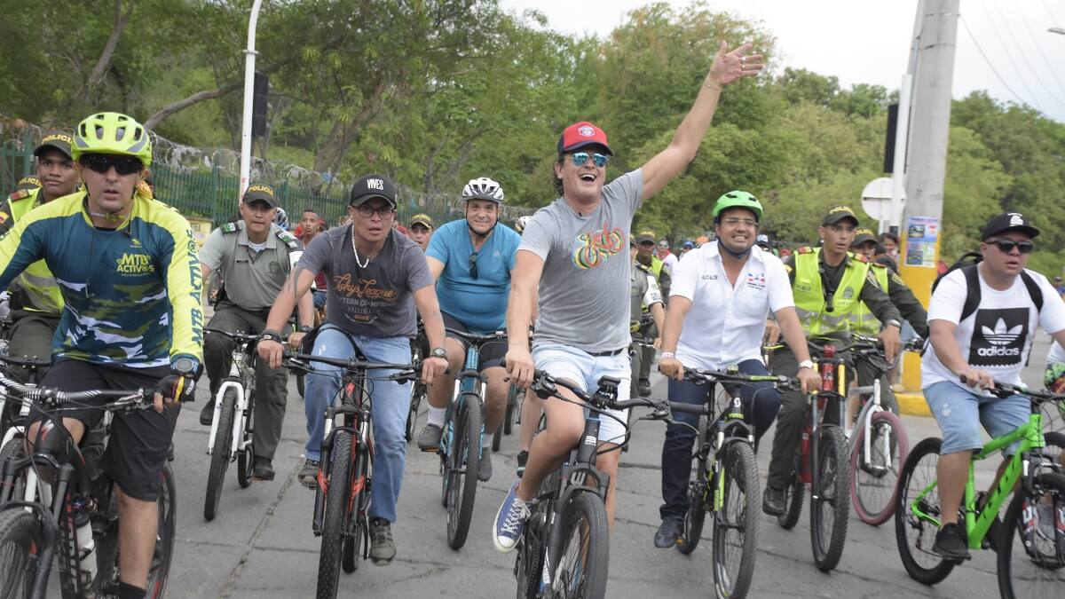 Vestido con su infaltable ‘mocho’, tenis chavitos, suéter gris y una gorra del Unión Magdalena, el artista empezó a pedalear a ritmo acelerado como si se tratara de Nairo Quintana. 'Carlos tiene un buen estado físico, es líder en todo lo que hace. Ahora esperamos que estos ciclopaseos se sigan haciendo en nuestra ciudad', dijo Juan Carlos Arzuaga, uno de los que también realizó el recorrido.