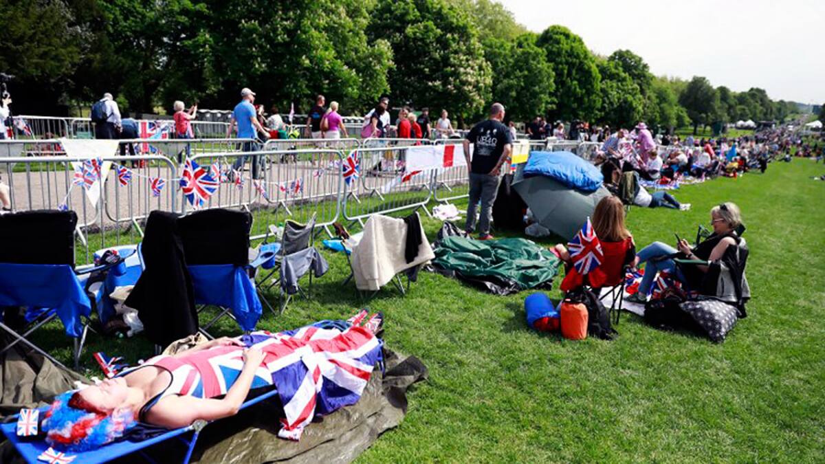 Las dos hermanas acamparon en la verdura de Long Walk, la larga y majestuosa avenida bordeada de grandes árboles que Enrique y Markle recorrerán en un carruaje descubierto justo después de la boda, en el que será su gran baño de masas.