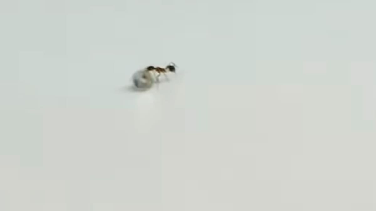Completamente aferrada a la piedra preciosa, una hormiga camina rápidamente por una mesa sin soltar ni un solo instante al pequeño diamante. Los trabajadores de un taller de joyería no pudieron abstenerse de grabar ese curioso acontecimiento.