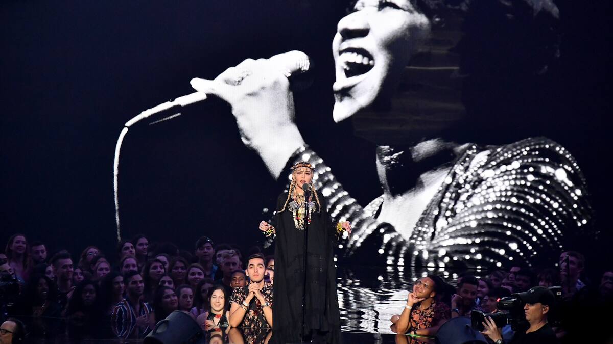 Madonna lideró este lunes un sentido tributo a la 'reina del soul' Aretha Frankin en los MTV Video Music Awards.