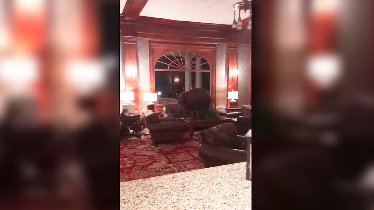 "Un visitante nocturno del ambiente salvaje visita el 'lobby' de nuestro hotel. Haremos una excepción a la regla sobre saltar en los muebles", escribieron los responsables del hotel en su cuenta de Facebook.