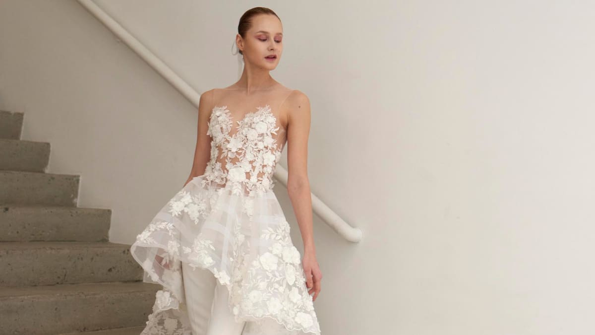 Organzas, tules, crepes, mikados, mallas bordadas y chifones de seda con siluetas que incluyen transparencia y fluidez es lo que para Hazbún marca tendencia en los vestidos de novia en las últimas colecciones.