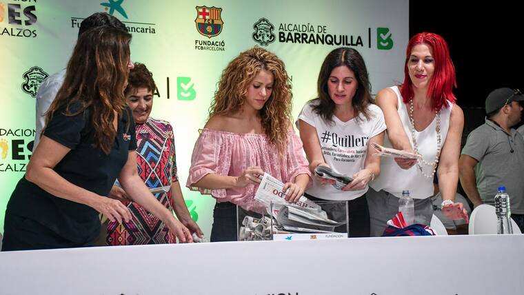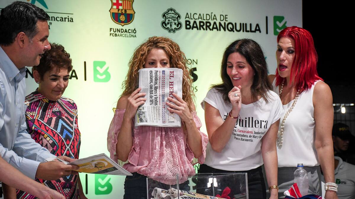 Uno de los momentos más emotivos del acto de comienzo de obras del colegio en el barrio El Bosque fue cuando Shakira tomó un ejemplar de EL HERALDO y se lo llevó al rostro para olerlo.