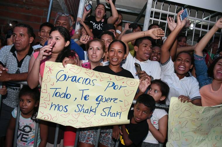 La cantante barranquillera hizo presencia en el barrio El Bosque hacia las 6:50 p.m. de este viernes, donde la esperaba una multitud para saludarla y tomarse fotos con ella.