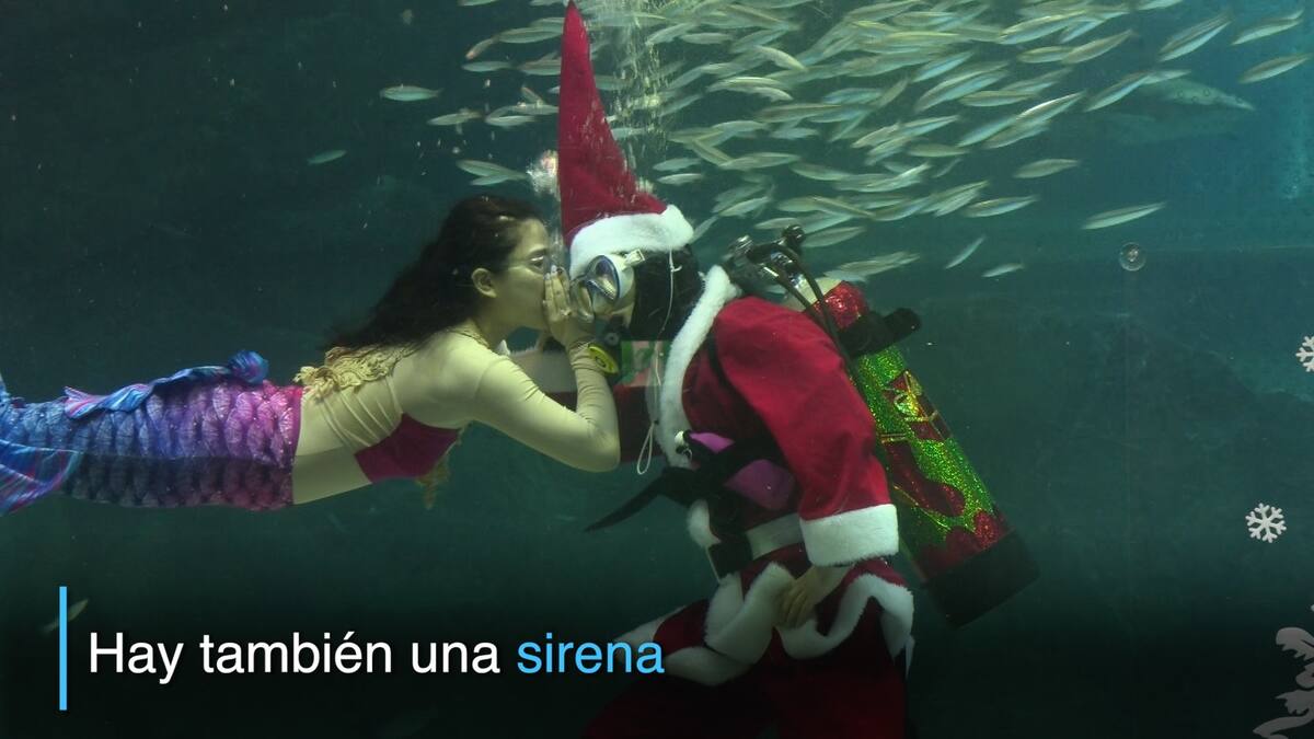 La Navidad ya llegó a un gigantesco acuario de Seúl, donde un Santa Claus bucea junto a peces, sirenas y renos